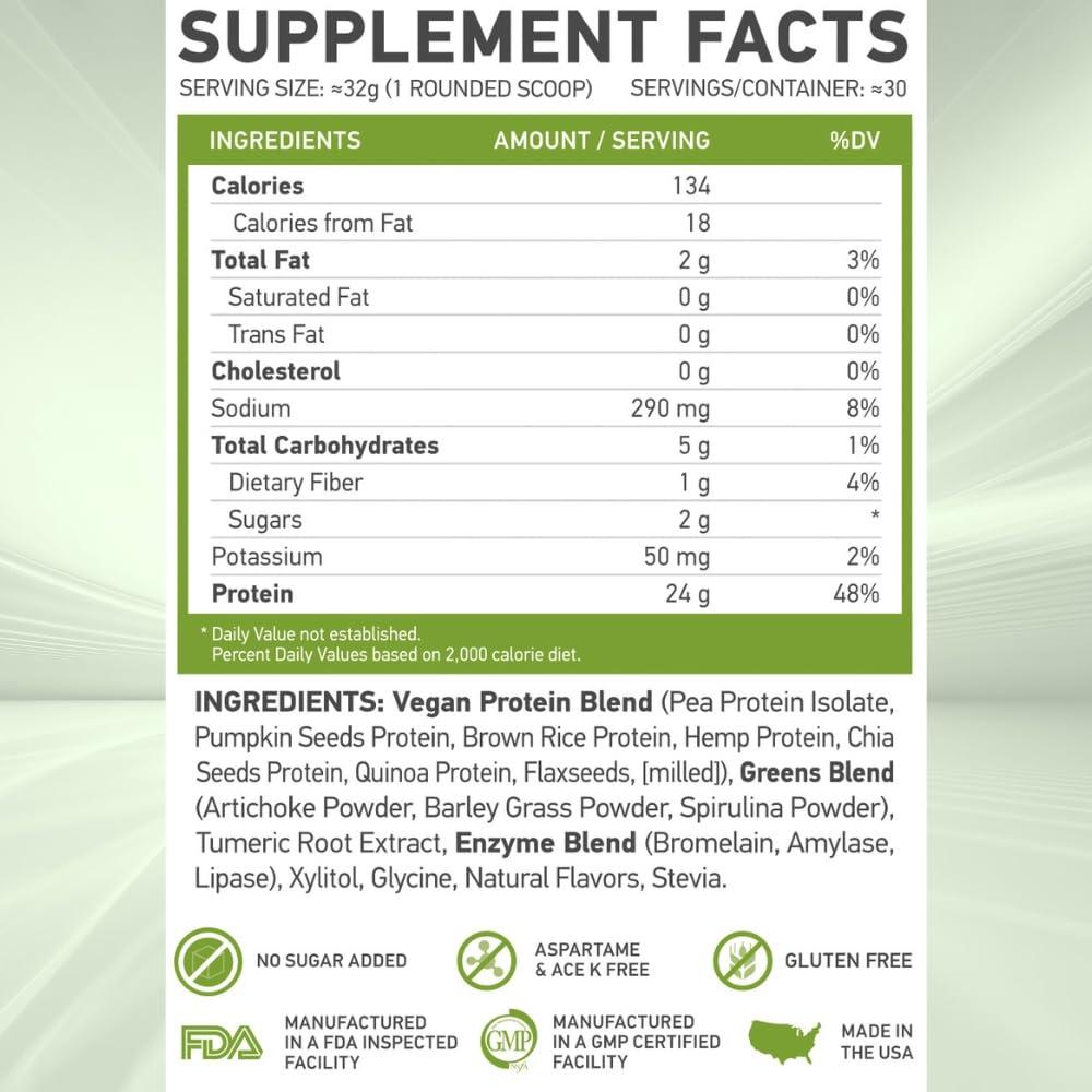 - 8 PROTEIN PLANT-BASED Protein Powder | plus GREENS & ENZYME BLEND