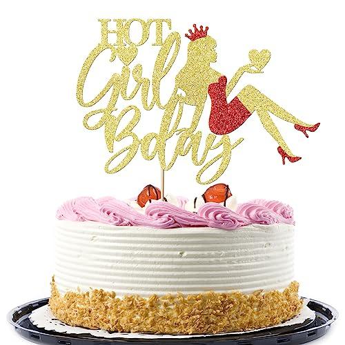 Glitter Hot Girl Bday Cake Topper , Happy Birthday Cake Topper , Funny Birthday Party Decorations for Women, Bachelorette Party Decorations Girls' 21st 25th 30th Birthday Party Supplies