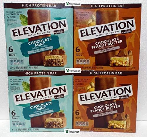 Millville Elevation Mint Chocolate and Chocolate Peanut Butter High Protein Bars 14.4oz 408g (Pack of Four)