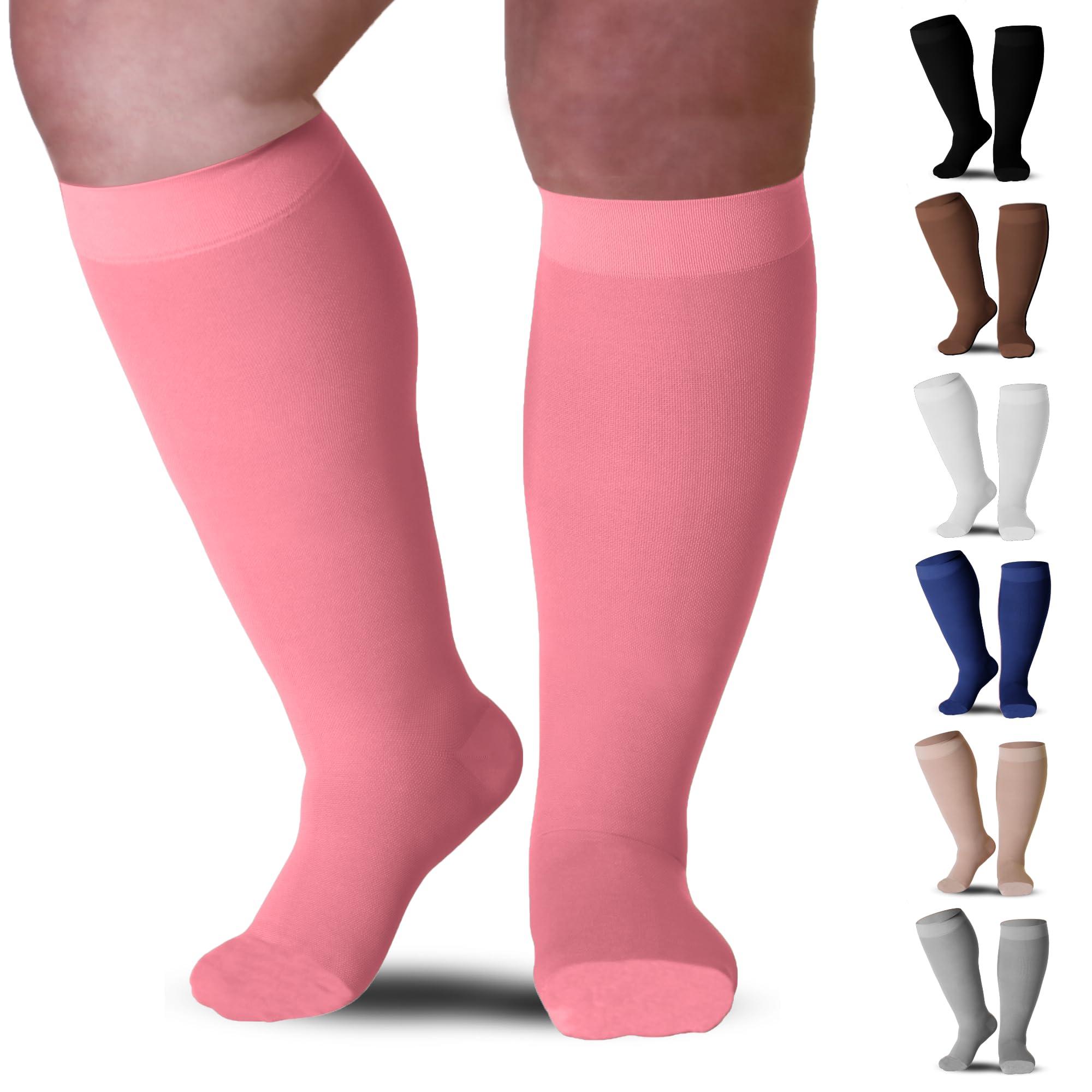 Compression Socks for Women and Men 20-30mmHg Knee High - Unisex Medical Compression Support Stockings for Nursing, Airplane, Travel Circulation - Pink, X-Large - AB201