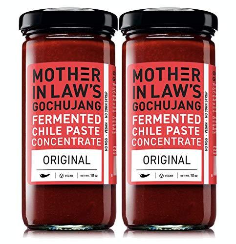 Mother-in-law's Kimchi [MILKimchi] grew out of a labor of love to share a delicious, artisanal kimchi. As an avid food and wine lover, founder, Lauryn Chun, was inspired to recreate the same kimchi from her mother's beloved restaurant in California. The original, "House Style" MILKimchi recipe hails from the 22 year-old restaurant, Jang Mo Gip [translates into mother-in-law's house], founded in 1989 by Lauryn's mom, in Garden Grove, California. Natural fermentation makes it a healthy probiotic food that is good for your digestion. Gochujang is the most popular pantry staple in Korea. Use it as you would tomato paste in cooking, dips, sauces or sandwich spread for spicy umami flavors. Available in 4 flavors: Gochujang fermented Chile Paste Concentrated (Original): Signature Gochu (Chile) Jang (fermented paste) made by using time honored traditional methods with no high fructose sweeteners or msg. Delicious on everything. These products contain gluten. Manufactured in a facility that processes milk, seafood, soy, nuts. Mother In Law Kimchi Gochujang fermented Chile Paste, Concentrated, 10 Oz 2 Pack.