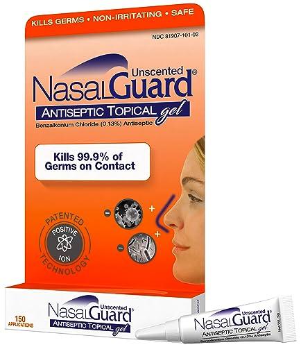- FOR THE WHOLE FAMILY - NasalGuard ensures safety for all family members, without any known drug interactions. Its formulation is safe, non-irritating, alcohol-free and moisturizing. NasalGuard Antiseptic Gel is gentle on users but tough on harmful airborne particles.