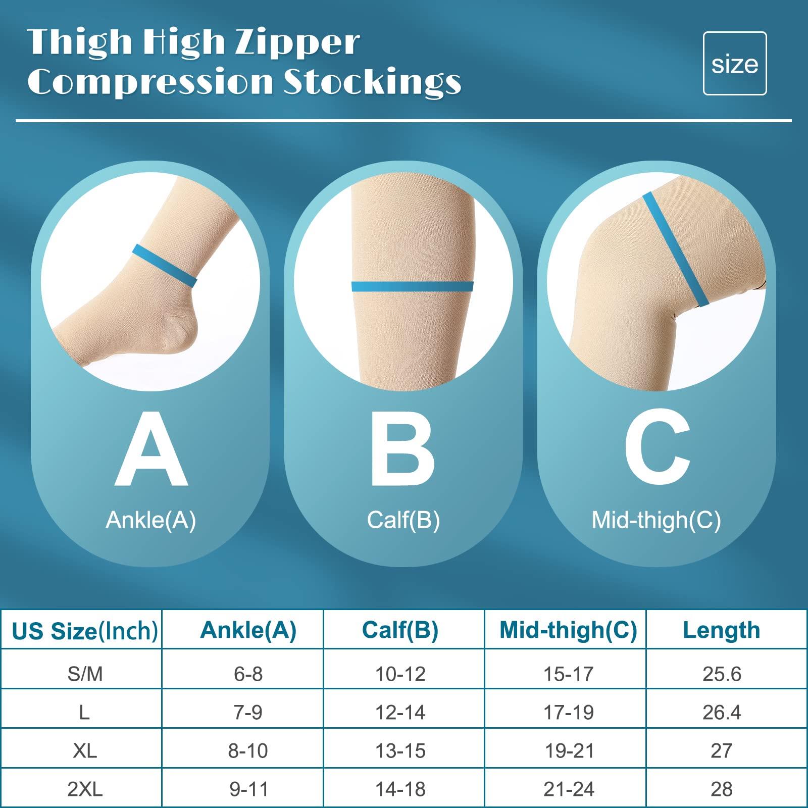 - Widely Applicable: thigh high zipper compression stockings for women men are suitable for sedentary and long standing people, such as teachers, traffic police, shopping guides, beauticians, doctors, nurses, office workers, etc.; They can also be utilized for travel, pregnancy, sports, running, hiking and cycling
