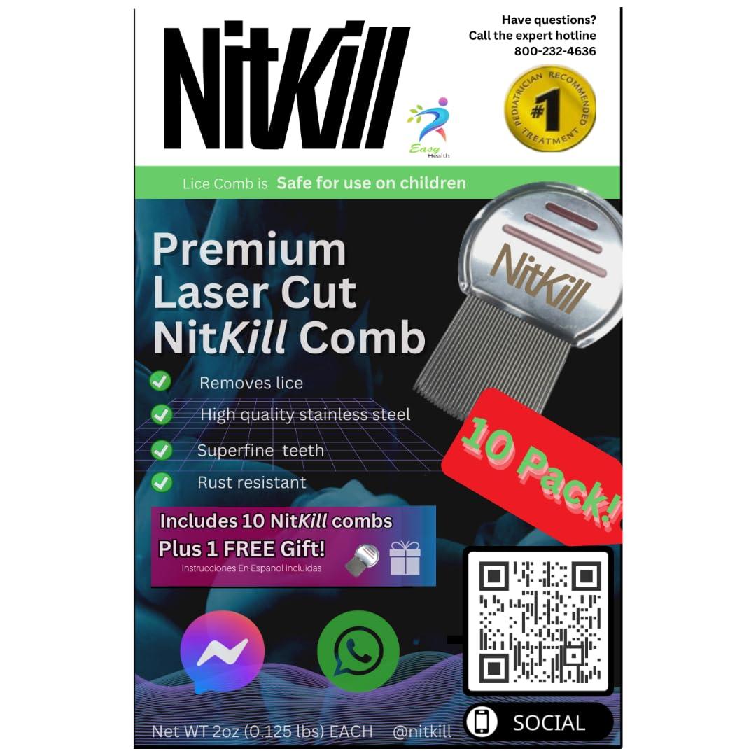 Get underneath and remove even the tiniest lice eggs (nits) from hair with this comb's spiral micro-grooved teeth. Tightly grip the comb with the anti-slip bands on the handle and protect the scalp and hair thanks to microscopically-rounded tooth ends that prevent pricking, scratching, or pulling. Lice-fighting formulas includes products that help safely remove lice with lice combs, shampoos, conditioners, mousse, sprays, and more. This pack includes one NitKill Terminator Lice Comb with Lifetime Guarantee.