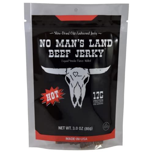 NO MANS LAND BEEF JERKY No Man’s Land HOT Beef Jerky High Protein Low Calorie Low Carb Beef Snack 3.0oz Bag