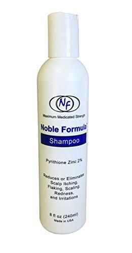 Noble Formula Shampoo reduces or eliminates scalp itching, flaking, scaling, redness and irritation. Noble Formula Shampoo may enhance the results achieved by all Noble Formula Sprays and Creams. NF Shampoo contains the highest concentration of zinc allowed. Noble Formula Shampoo is a low lather shampoo. Shake well before use. Apply to wet hair, and massage into lather, rinse and repeat. For best results, use twice weekly or as directed by a physician. For maximum control, use daily.