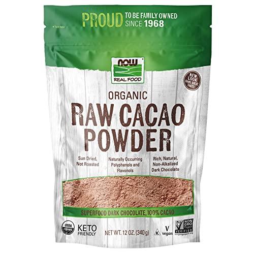 Our Organic Cacao Powder is sourced from Peru, where the raw cacao beans are slowly fermented to bring out their rich flavor and then sun-dried, instead of roasted, to retain all of their valuable nutrients. Our cacao is harvested under a fair trade program that promotes environmental sustainability and fosters strong ties within the local farming community. With NOW Real Food Organic Raw Cacao Powder you can enjoy the intensely rich flavor and nutritional benefits of dark chocolate without added sugar and unhealthy ingredients. Cacao powder is ideal for wholesome, natural recipes, and it's a great addition to a variety of desserts and beverages, including hot chocolate and ice cream. Raw cacao has naturally occurring polyphenols and flavonols, making it a true superfood!