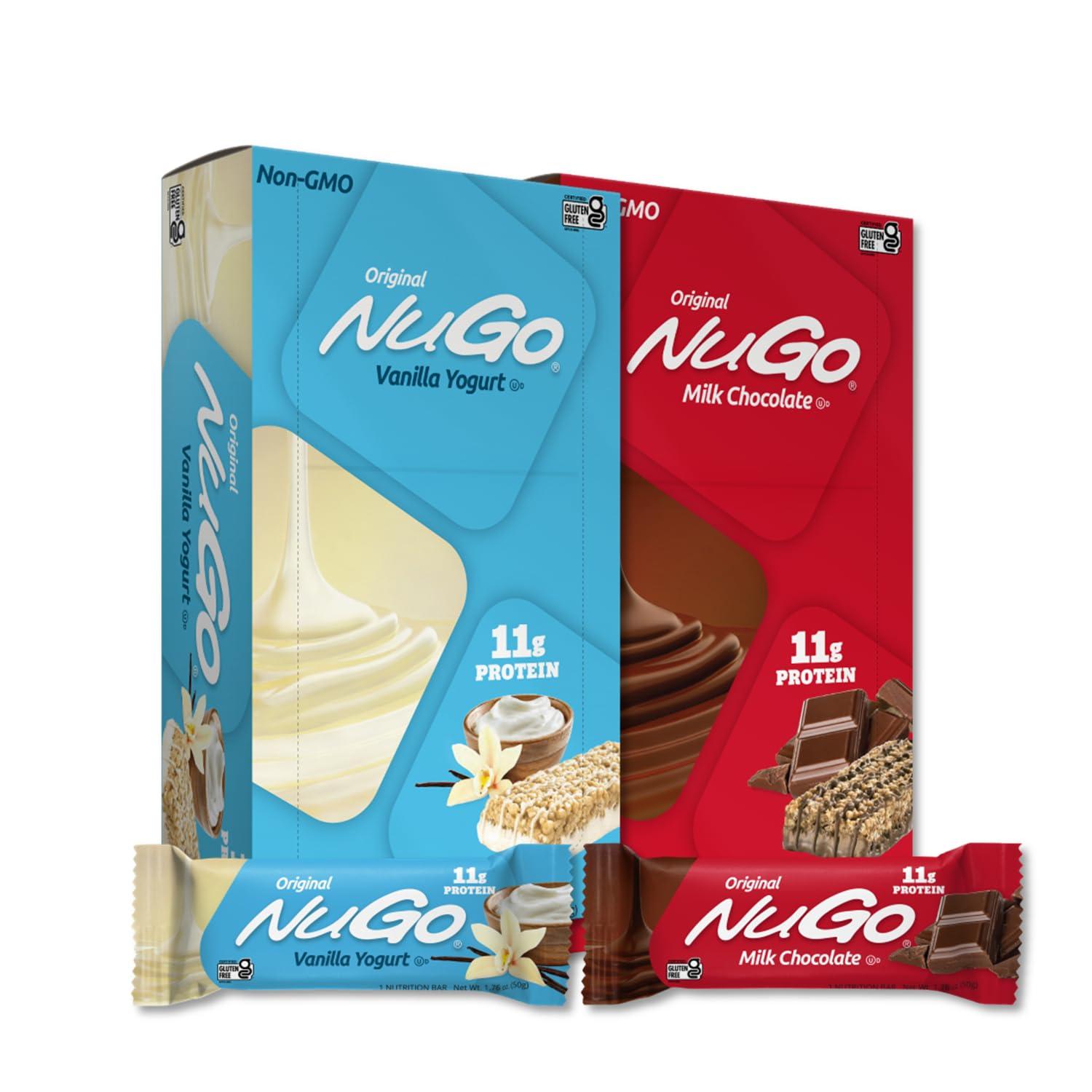 - Families love NuGo Protein bars! Every NuGo Original protein bar is made with real, non-GMO ingredients, loaded with vitamins, and certified gluten free to help keep your family fit and happy. Perfect for packing into their little lunches or your own.