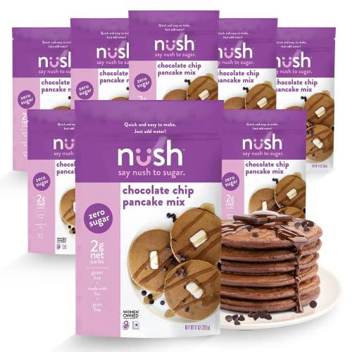 - Unique Chocolate Chip Pancake Mix | Nush Chocolate Chip Pancakes have that melt-in-your-mouth quality that brings sweetness, fluffy pancakes, and health together in a beautiful breakfast trifecta! Makes about 18 mouthwatering sugar-free chocolate chip pancakes per container. (144 pancakes per 8 pack)