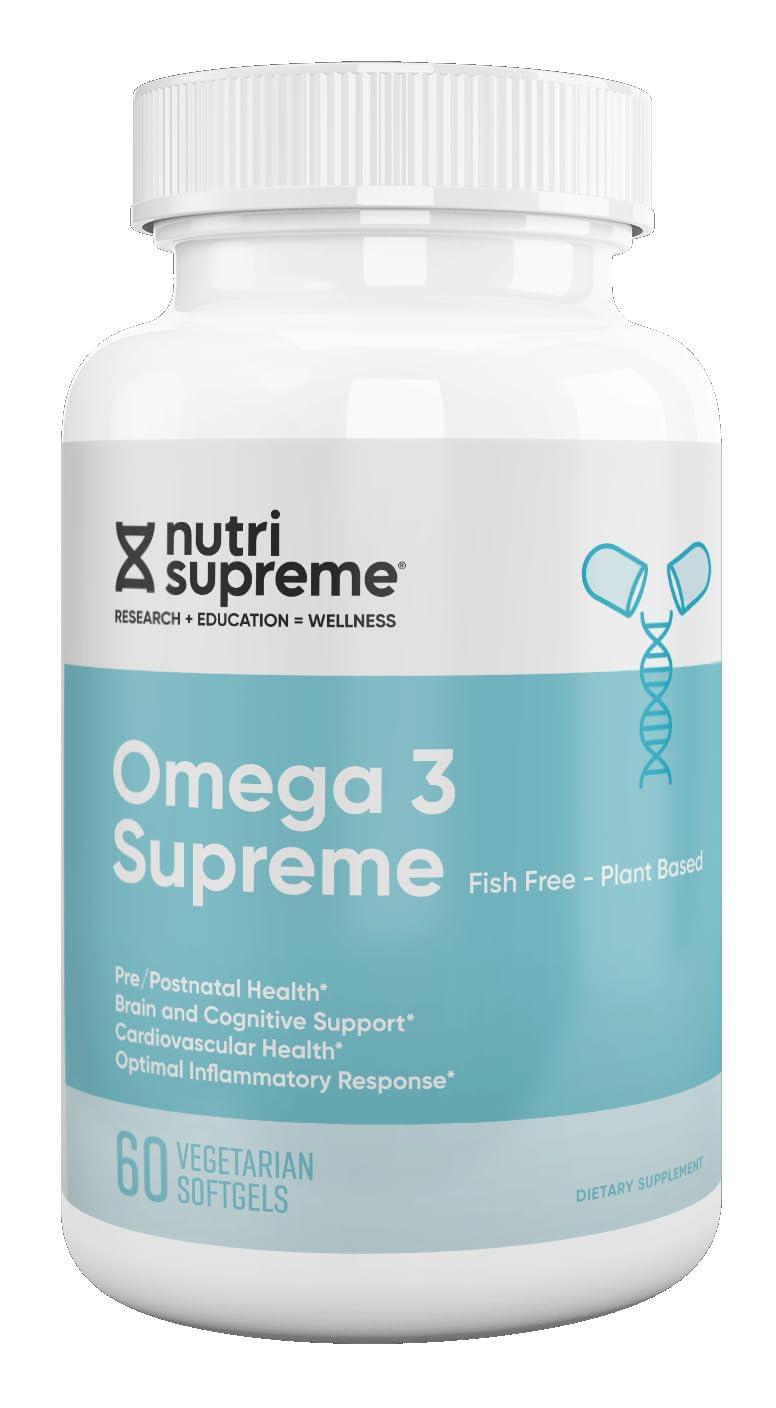 Nutri Supreme Omega 3, Plant Based Omega 3, Fish Free Premium Algal Oil Omega 3 Supplement for Heart, Skin, Brain, Eye and Immune Support, 60 Vegetarian Capsules
