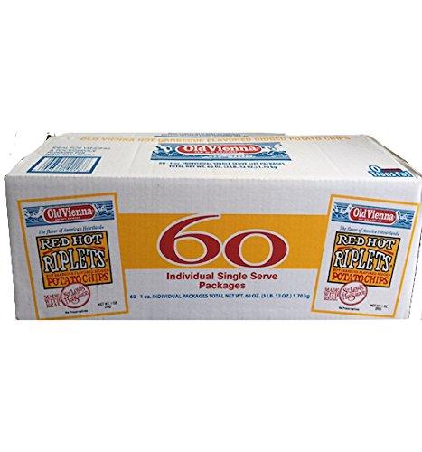 Spicy Hot Barbecue Flavored Ridged Potato Chips; Flavored with St. Louis Style Hot Sauce; Case Contains 60 Individual Single Serve 1oz Packages; The Best Spicy Potato Chip; Famous Red Hot Riplets Made with Real Ozark Hickory in the Best Barbecue Potato Chips