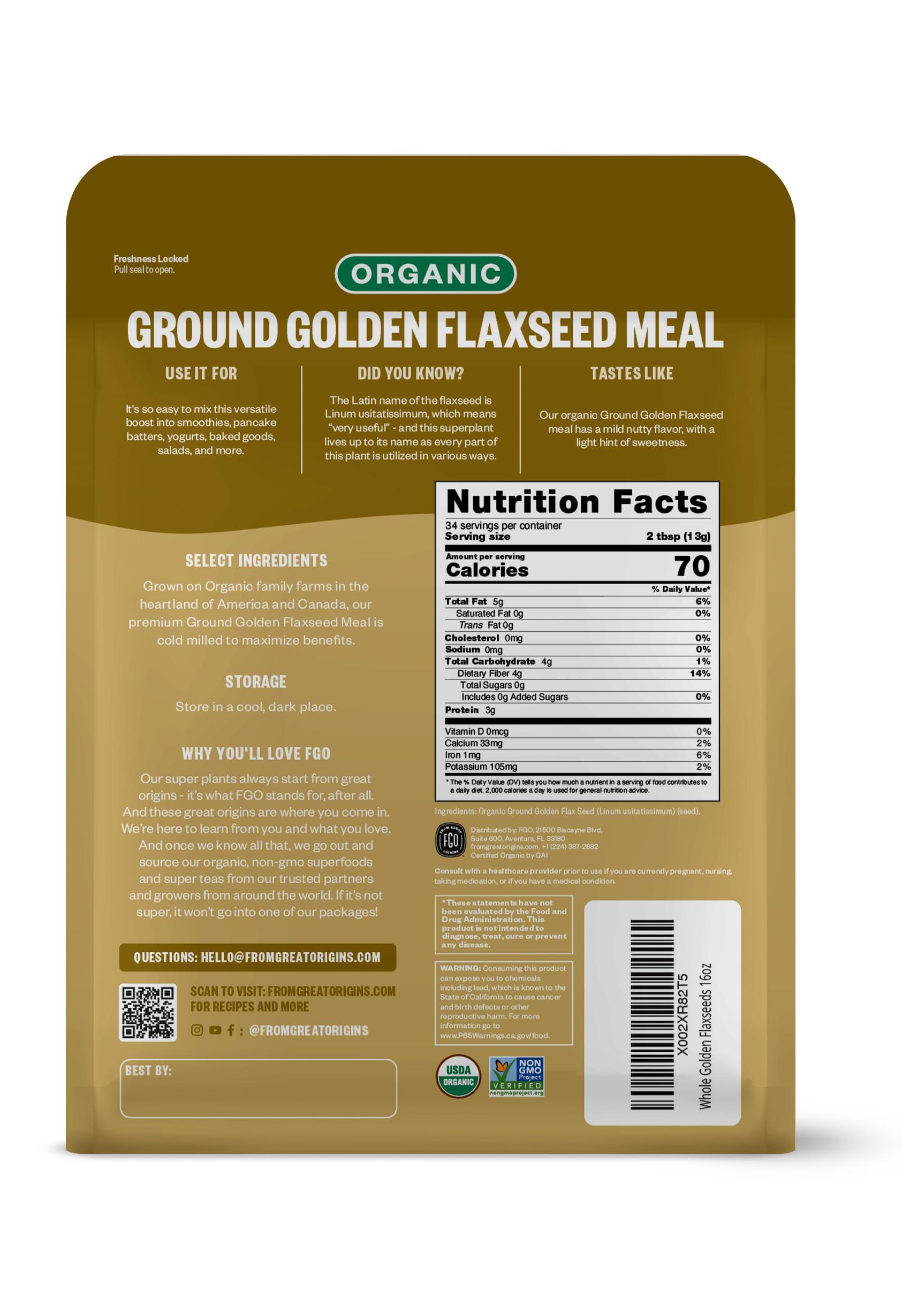 FGO Organic Ground Golden Flaxseed Meal, Cold Milled, Grown in USA, 2 Pound (Pack of 1)