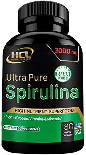 - THE MOST NUTRIENT DENSE VEGAN SUPERFOODS Our 3000 mg per serving of spirulina will produce some of the best detox and nutrition results. It is full of proteins, vitamins, minerals, antioxidants, and chlorophyll. Spirulina energize you from within.*