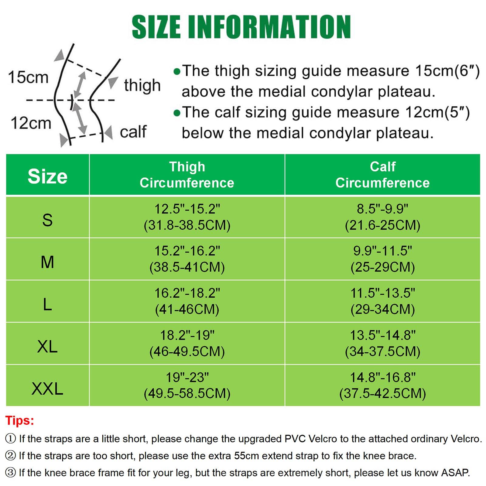 - CHOOSE THE CORRECT SIZE: Our knee brace comes with FDA-registered 5 universal size variations (S, M, L, XL, XXL) to fit any knee size perfectly. According to our size chart to choose the most comfortable and suitable fit for your left or right leg. In case you do not find a size matching with your measurements, we request you to kindly drop a message to us itself. A perfect brace for men and women who with knee issues to get through heavy activities or just everyday tasks. Now freely enjoy demanding sports without risk of injury.