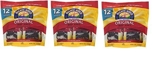 Pacific Gold Original Beef Jerky Value Pack - 3 Bags of 12 - 1.25 oz per Bag Bag - Total 36