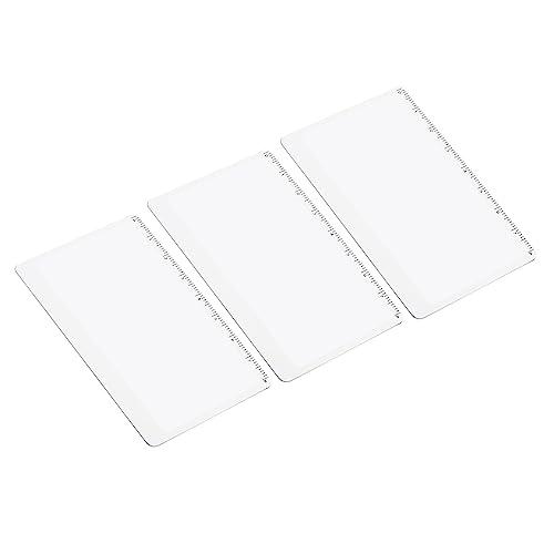 - Color: Clear; Material: PVC; Size: 85mmx55mmx0.5mm / 3.35 x 2.17 x 0.02 Inch; Packing List: 3 Pcs x Bookmark Magnifier with Ruler