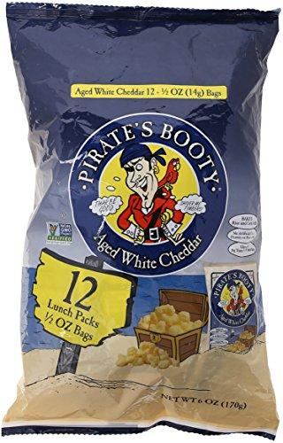 Drop anchor and discover a tasty snack, Pirates Booty aged white cheddar puffs. Perfect to add to your childs lunch as they set Sail for school, or as an afternoon snack to fuel activities, our baked puffs aim to conquer any snacking occasion. With gluten-free rice and corn blended with real aged white cheddar and baked to perfection, youll quickly discover that the true Pirates treasure is in the palm of your hands.