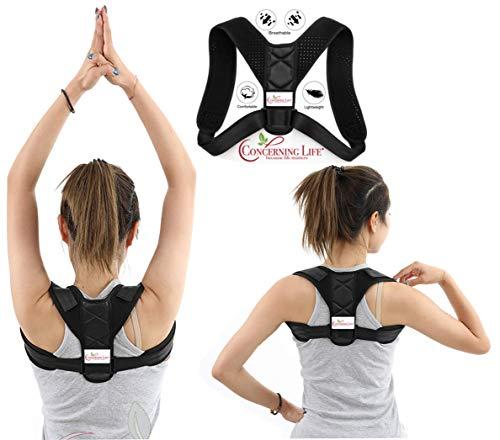 - EASY TO USE AND ADJUSTABLE SUPPORT BRACE: Our posture corrector is exclusivly made for your comfort. Other posture correctors can dig into your skin and fit uncomfortably under your armpits. Concerning Life's Posture Corrector is adjustable to fit many different chest sizes. It is designed to fit chest sizes from 23" to 39""