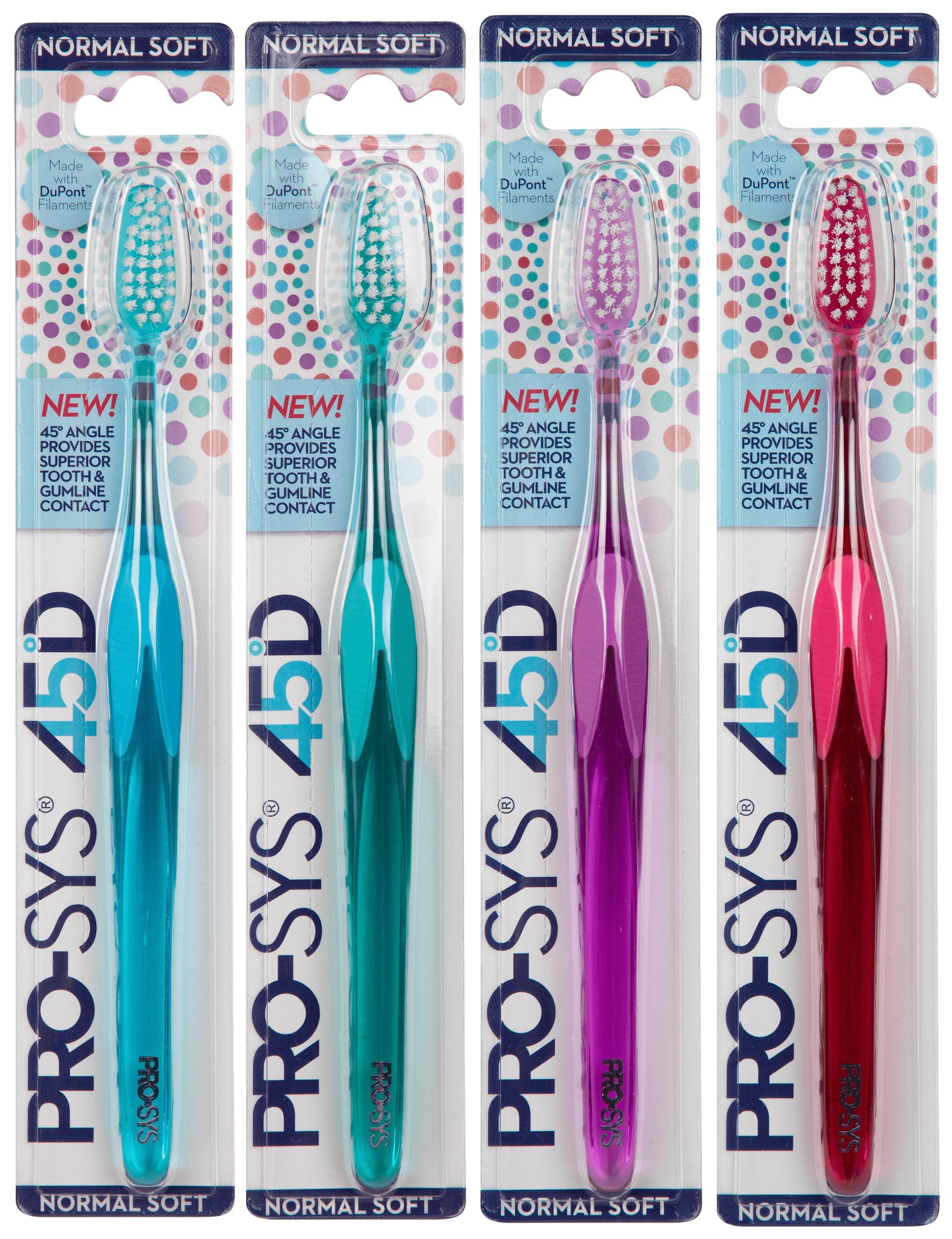 PRO-SYS 45D Normal Soft Toothbrush (45-Degree Angle Brush), 4-Pack
