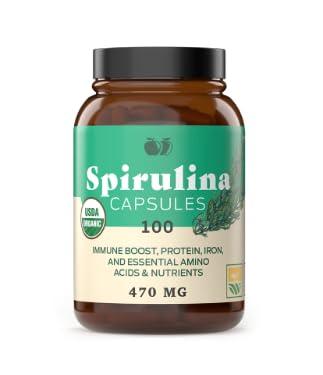 Pure Hawaiian Blue Green Spirulina Powder Capsules - 470mg Capsules 100 Pills, Non GMO, Natural
