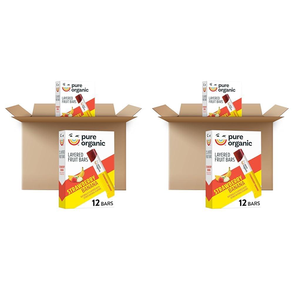 - Satisfy your sweet tooth with Pure Organic Strawberry Banana Layered Fruit Bars, a fruit snack made with no cane sugar or syrup