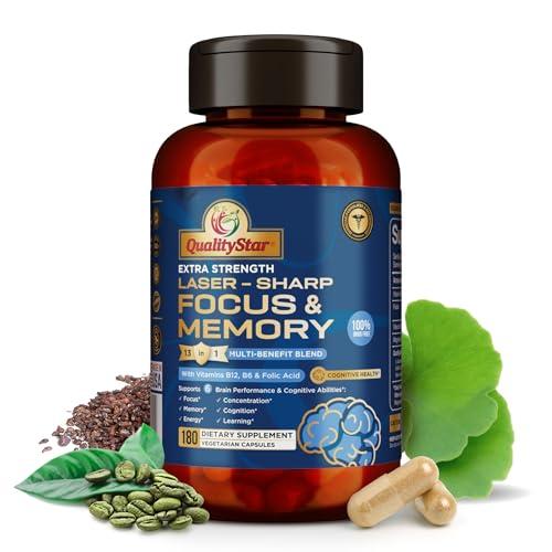 - Improves Memory and Cognitive Functions - QualityStar's Focus & Memory Supplements contain key ingredients like vitamins B6, B12, and Folic Acid, which are known to support cognitive function. This memory and focus supplements for adults can help you think more clearly and quickly.
