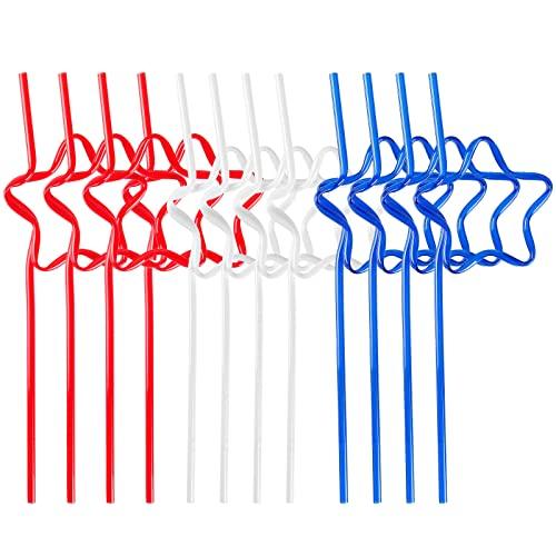 Quera Quera 30 pcs Star Crazy straws 4th of JULY Red White Blue Silly Straws Patriotic Loop Straws Reusable BPA-Free Plastic Drinking Straws Silly Colorful Drinking Straws for Kids Birthday Party Supplies