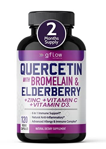 - A POWERFUL COMBINATION TO BOOST THE IMMUNE SYSTEM: Quercetin is a plant pigment naturally found in fruits and vegetables. Gflow Quercetin with Bromelain has also vitamin C, Zinc, and Vitamin D3, and elderberry. Sambucus elderberry works together with the other ingredients to help the body absorb the quercetin more effectively