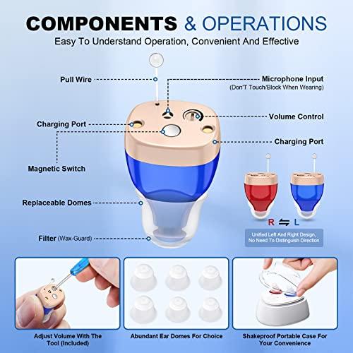 - Lightweight and comfortable: Adult hearing aids are small in size and light in weight, fit snugly and are more comfortable to use. Different sizes of medical material domes fit everyone, along with cleaning tools for longer life. Ergonomically designed, not easy to fall off, and will not be affected by wearing glasses.