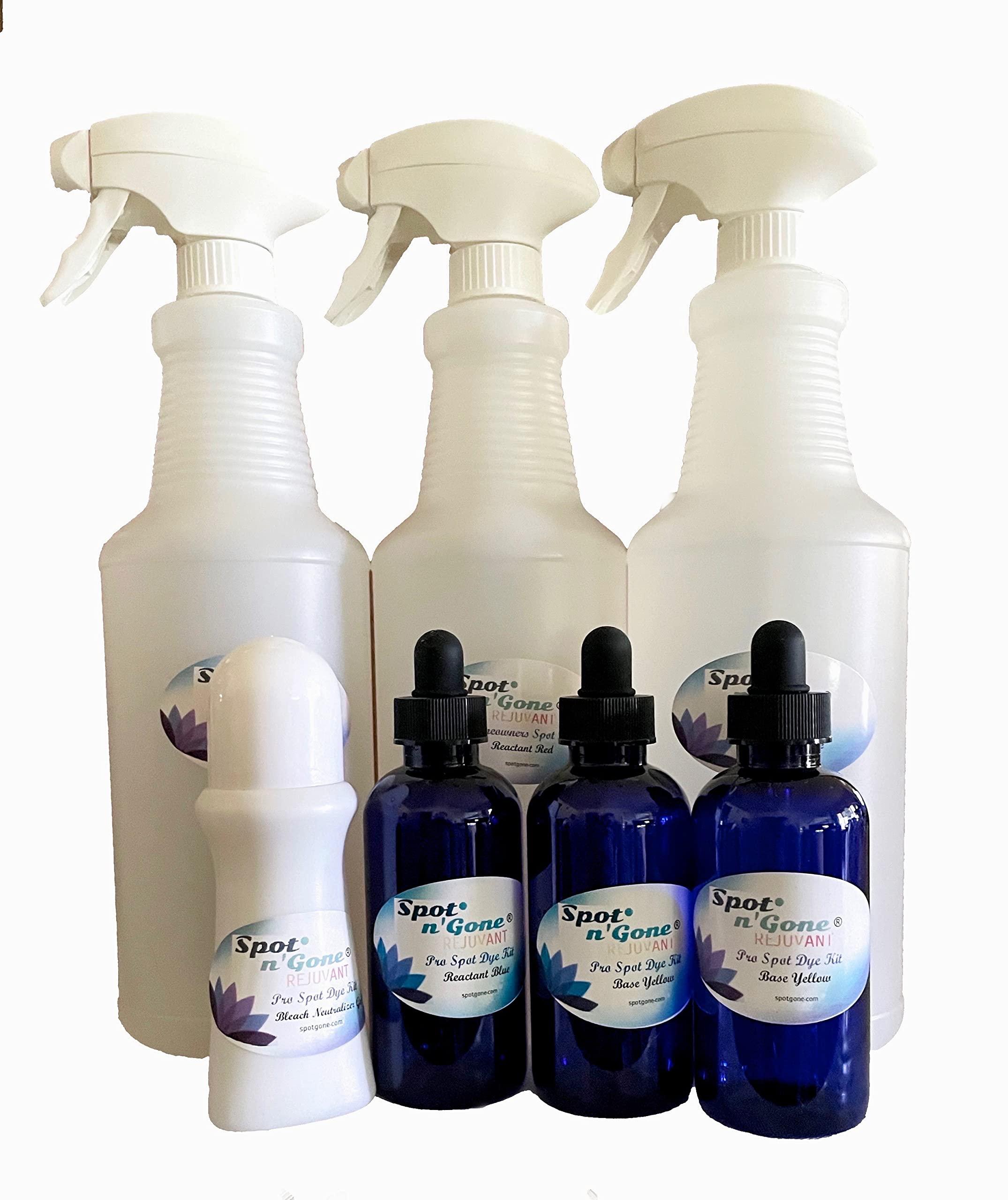 We developed a perfect system for restoring the loss ratio of missing colors from carpet discoloration. Then we simplified it into an easy, step-by-step process. The result? Perfect color restoration. Anyone can use our system. You'll be doing what the pros think they can't do. The most accurate and correct method available. Kit contains: Instructions, Use of Help Line. 3 Reactant dyes, Rollerball gel bleach neutralizer, 3 Application Spray bottles. Customer supplies needed wet vac, or any form of extraction machine. This product is highly accurate and will work in most cases. Please contact us with any questions. We are available 24 a day.
