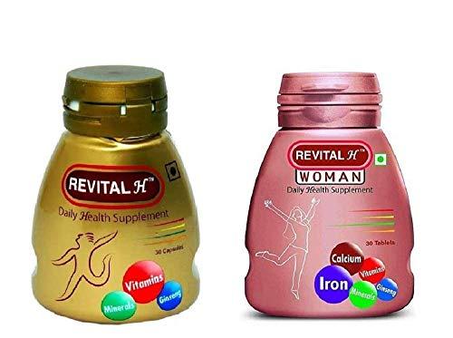 Product 1: It s a combination of Ginseng, 12 Vitamins and 10 Minerals, that enhance the energy levels, thus helping in feeling dynamic throughout the day Product 1: Vitamins, Multivitamins & Minerals such as Vitamin C, Zinc and Iron, boost immunity and aid in uplifting physical and mental strength respectively Product 1: How to Use: 1 tablet daily with a glass of water/milk/juice Product 1: Revital H Woman is specially formulated for women, keeping the specifics of their energy needs in mind. Product 2: This nutritional capsule for daily health is a balanced combination of Ginseng, 10 Vitamins and 9 minerals which help in improving physical and mental performance and add vigor and vitality to everyday life Product 2: Its key ingredients, natural Ginseng, vitamin B complex and Iron, help support daily energy needs, and fight fatigue throughout the day Product 2: Daily essential vitamins, multivitamins and minerals such as vitamin C, vitamin D and Zinc help in improving health and immunity Product 2: Natural Ginseng and Magnesium, improve mental alertness and concentration, and increase the ability to manage stress