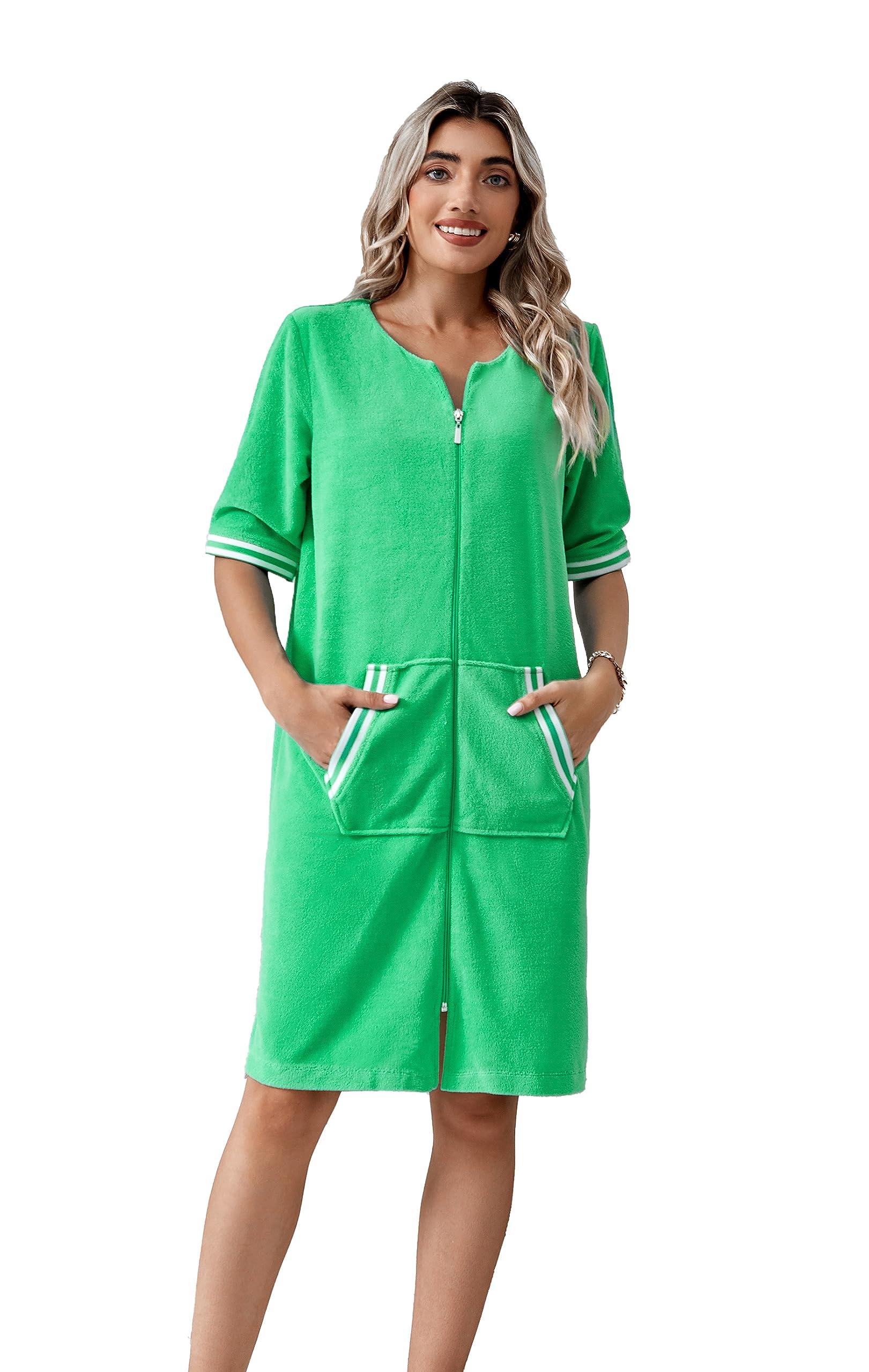 - SUITABLE DESIGN STYLE & COMFORT - The casual Housedress features a Front zip design, 3/4 sleeve, and short dress with side to side pockets and front slit design for feminine flair. So different unique and comfortable dress! These housedress are loose to allow airflow to keep your body cool and dry throughout the night.