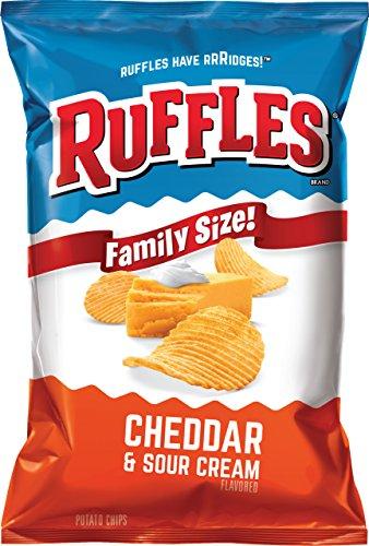 Ruffles cheddar and sour cream flavored potato chips have bold, thick and deep ridges to hold more of the real cheddar cheese and sour cream flavor you love. Theyre strong enough to withstand any dip. These big bags are convenient and perfect for sharing some delicious fun at home.