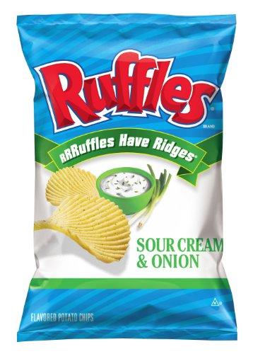 RUFFLES Sour Cream & Onion Flavored Potato Chips have bold, thick and deep ridges to hold more of the tangy sour cream & onion flavor you love. Theyre strong enough to withstand any dip. These big bags are great for sharing some delicious fun at home.
