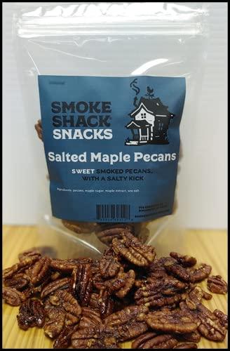 4.5 OZ Bag - Something a bit more sweet than savory, with a maple salty kick. Pecans that are marinaded and then caramelized in the smoker using apple and cheery wood. Smoke Shack Snacks is based in Rochester, NY, making hand crafted Smoked Snack Products. Our products use simple ingredients no smoke flavoring or nitrates.
