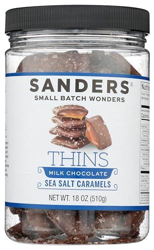 Sanders Milk Chocolate Sea Salt Caramel Thins, Kosher, 18 Ounce (Pack of 6)
