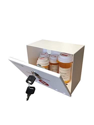 USA Patent Pending Secure A Meds Personal Medication Lock Box accommodates up to 6 different prescription bottles and has been constructed out of durable steel with a chromed steel lock with 2 keys included. The Secure A Meds box rests perfectly inside a standard medicine cabinet or can be securely mounted by using the included mounting hardware. Keeps your medications out of sight and out of the wrong hands.