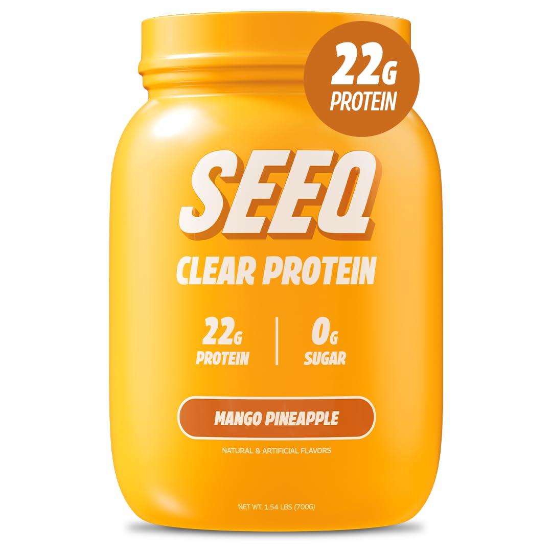 - MANGO PINEAPPLE: Lifes a beach || Close your eyes and feel the ocean breeze on your skin while the warm, powdery sand sinks beneath your toes. Inhale deeply as the sweet, tropical symphony of ripe mango and tangy pineapple whisks you away to a sun-soaked paradise. With each sip, it's as if your taste buds are lounging in a flavor hammock between two palm trees. Now, hold SEEQ's Mango Pineapple container up to your ear and listen closely you'll hear the soothing sound of the ocean waves. Who knew 22 grams of protein could taste this dreamy?