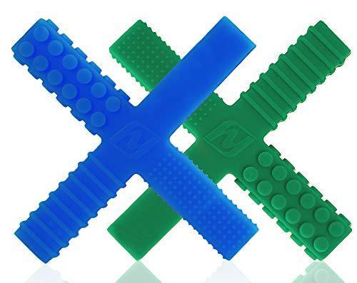 - 4 DIFFERENT TEXTURES Each leg of the cross teether has a unique texture for different sensory needs, extended handle for an easy grab and reach the back molar areas where we do most of our chewing.