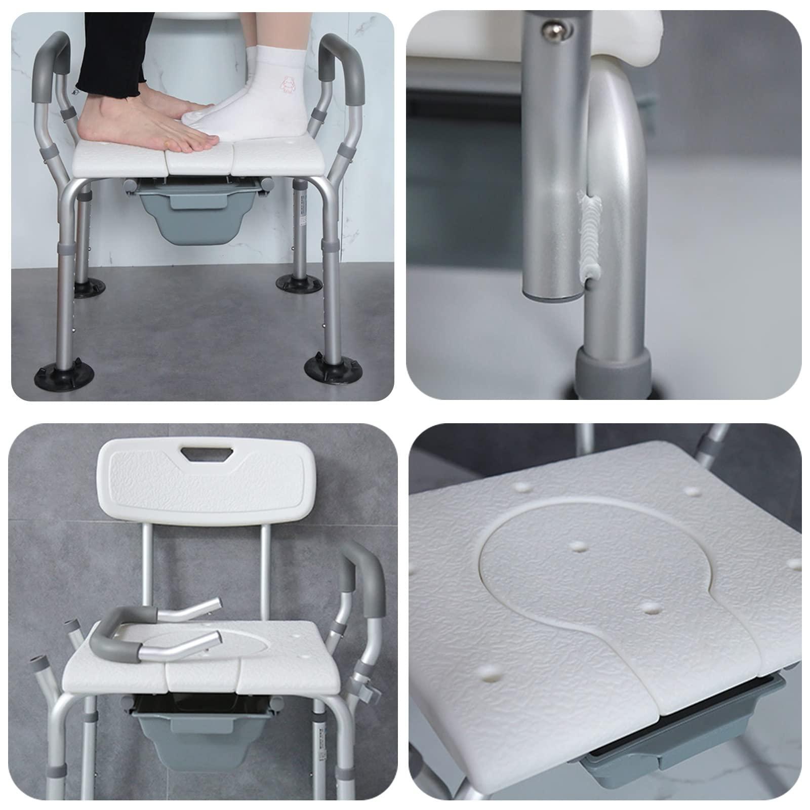 - 4-in-1 Chair: Designed as a shower chair, bedside commode, toilet safety frame and raised toilet seat to meet different needs, no matter for seniors, disabled or pregnant in bathroom, bedroom or hospital.
