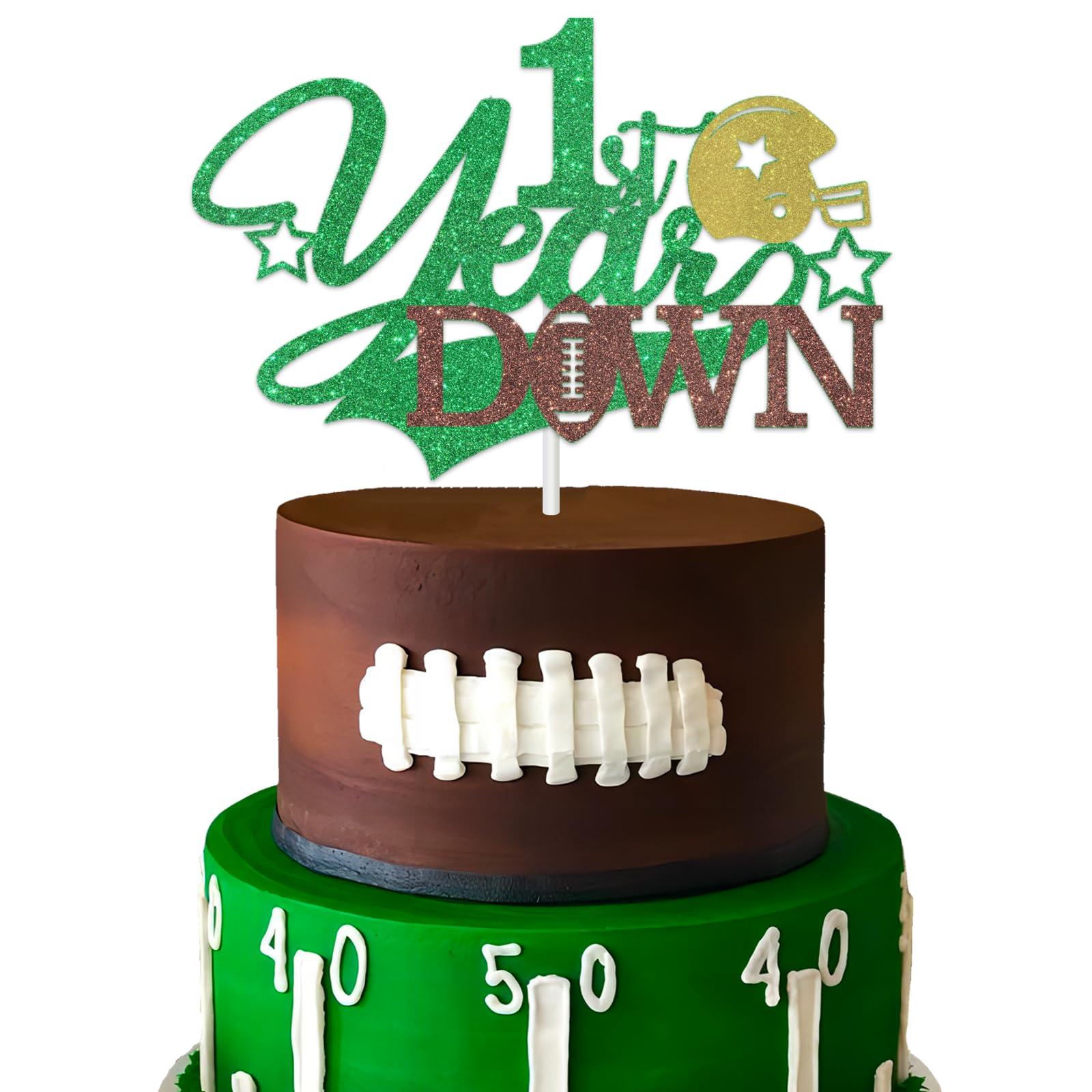 - Exquisite Football-Themed Design Our 1st Year Down Cake Topper features a dynamic football-themed design, adding a unique touch to your baby's celebration. Infuse this special first birthday with sporty vibes and joy!