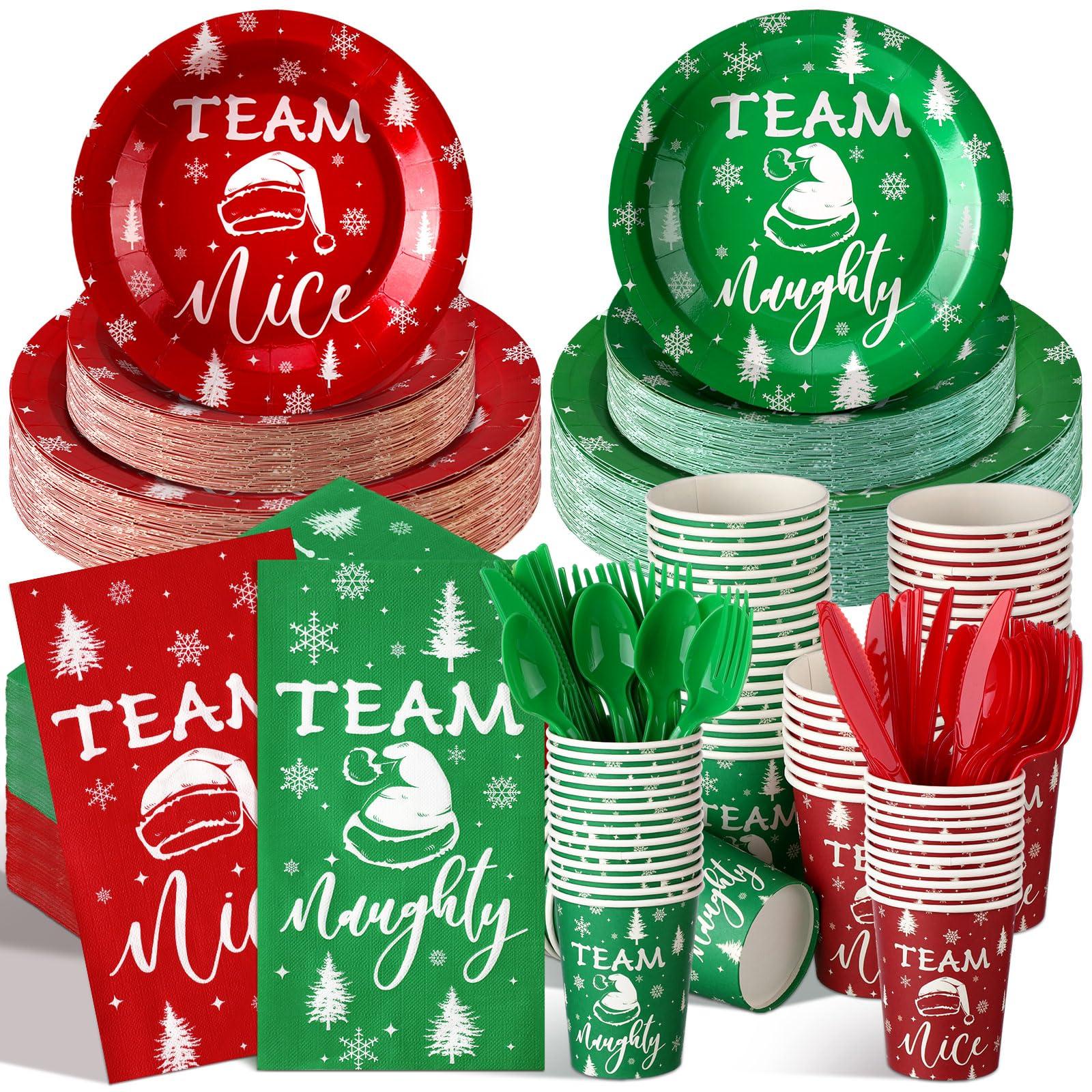 - Exquisite Design: our Christmas party supplies set is ideal for celebrating Christmas parties, featuring 'Team Naughty or Team Nice', ideal for creating a festive atmosphere for upcoming holiday parties; This party set is a great addition to Christmas parties and can be paired with table decorations; This design is very beautiful, making people feel relaxed and comfortable; We believe that your guests will appreciate this beautiful and lovely design