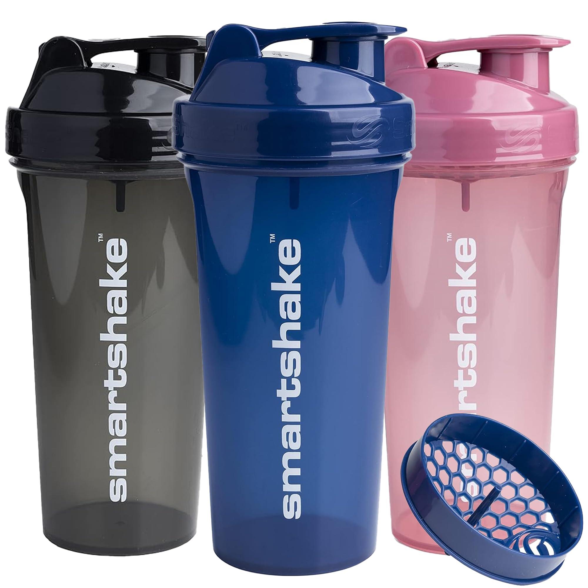 - SUPER LIGHTWEIGHT to hold, this protein shaker bottle weighs only 150 grams. The Smartshake Lite comes with our signature shaker net and screw-on leak-proof lid, packed into a no-frills shaker bottle