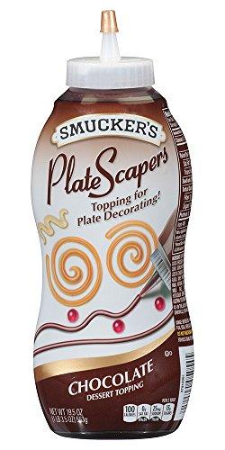 Chocolate topping for plate decorating. Plate scapers are the quintessential tool for today's kitchen. With a swirl of the wrist desserts are easily enhanced producing elegant results. Plate scapers are designed and formulated specifically for the foodservice industry.