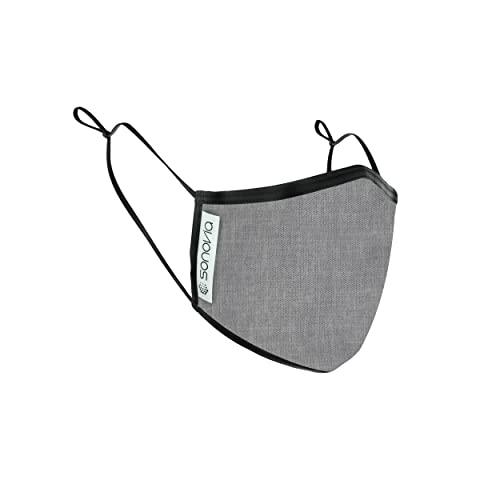 SONOVIA Reusable Face Mask with Patented Breathable Fabric Adjustable Ear Straps (Small (Pack of 3), Grey)