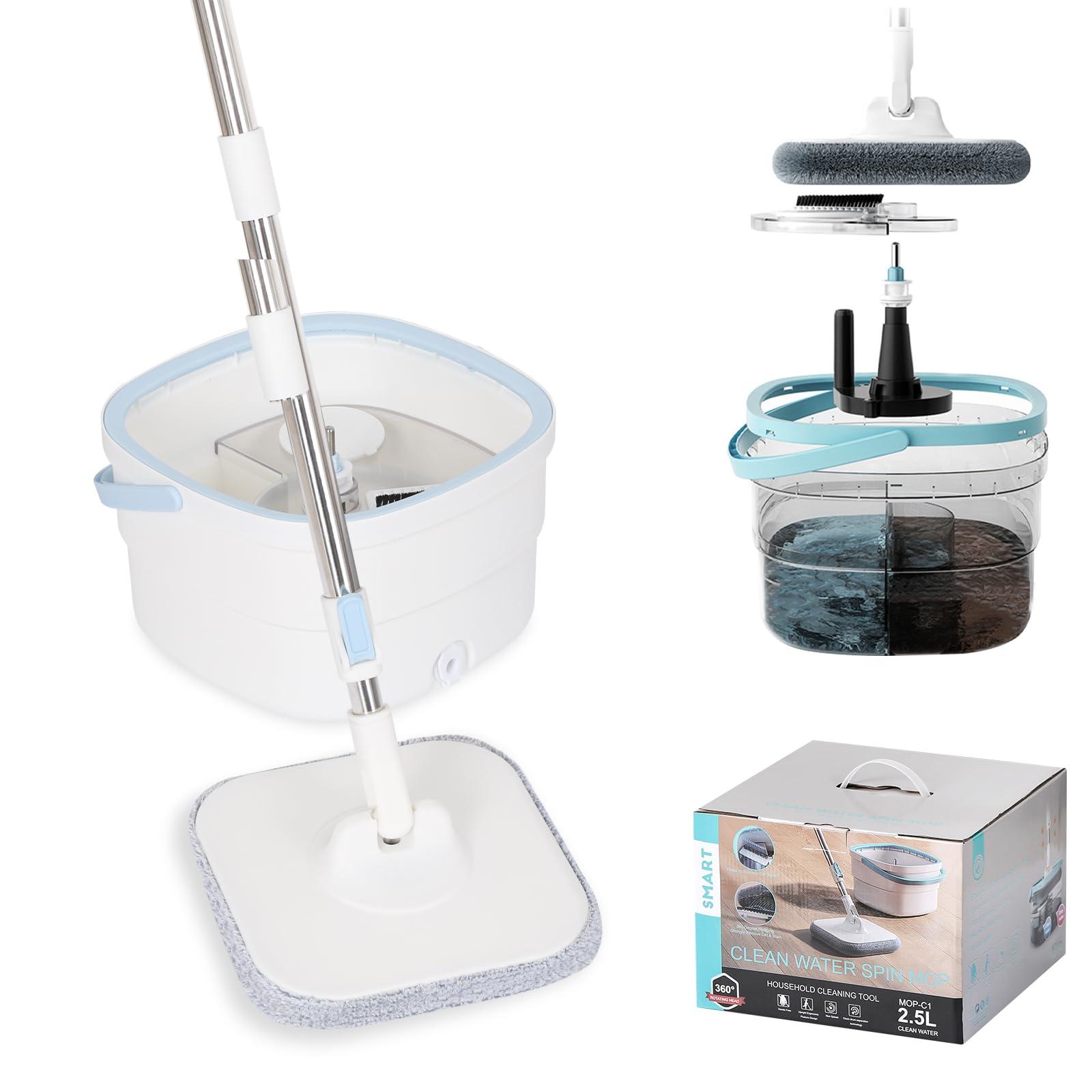 - Mop Bucket Separate Dirty WaterThe Spin Mop and Bucket is a true clean and dirty separation system, you can clearly see the clean and dirty water in two areas. You can use clean water all the time from the beginning to the end of mopping, so you never have to worry about dirty water mopping again