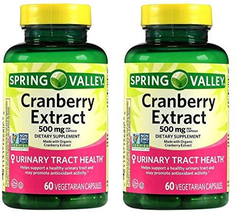 Spring Valley Cranberry Extract For Urinary Tract Health,Dietary Supplement,Antioxidant Health, 60 Count, 500 mg per Capsule (Pack of 2)