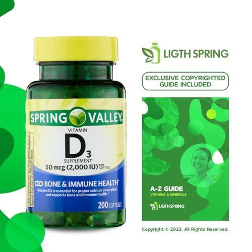Spring Valley Vitamin D3 2000IU Softgels are an easy and convenient way to get your daily dose of Vitamin D3. Each softgel provides 2000IU of Vitamin D3, which is essential for maintaining healthy bones, supporting immune function, and promoting overall well-being. Vitamin D3 is naturally found in sunlight, but it can be difficult to get enough through diet alone. Spring Valley Vitamin D3 Softgels provide a convenient and reliable source of Vitamin D3, making it easy to support your health and wellness goals.