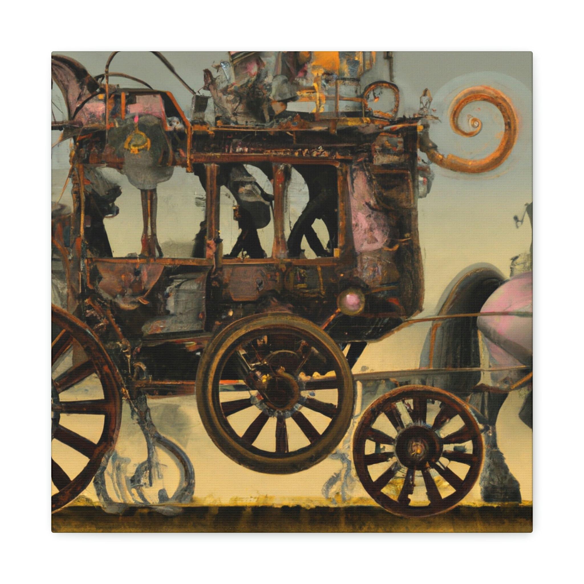 This stunning canvas painting of a century-old Horse and Carriage with Steampunk flair is a wonderful way to add a vintage look to any room. The image captures the character, power and grace of a time gone by and is sure to inspire curiosity in passersby. The timeless subject matter shows how transit and transportation has changed over the years, while the classic medium and sharp details of the image will never go out of style. #Steampunk #Canvas #Travel #Transportation #Horses #Carriage #Art #Historical #Unique #Vintage #Photorealistic