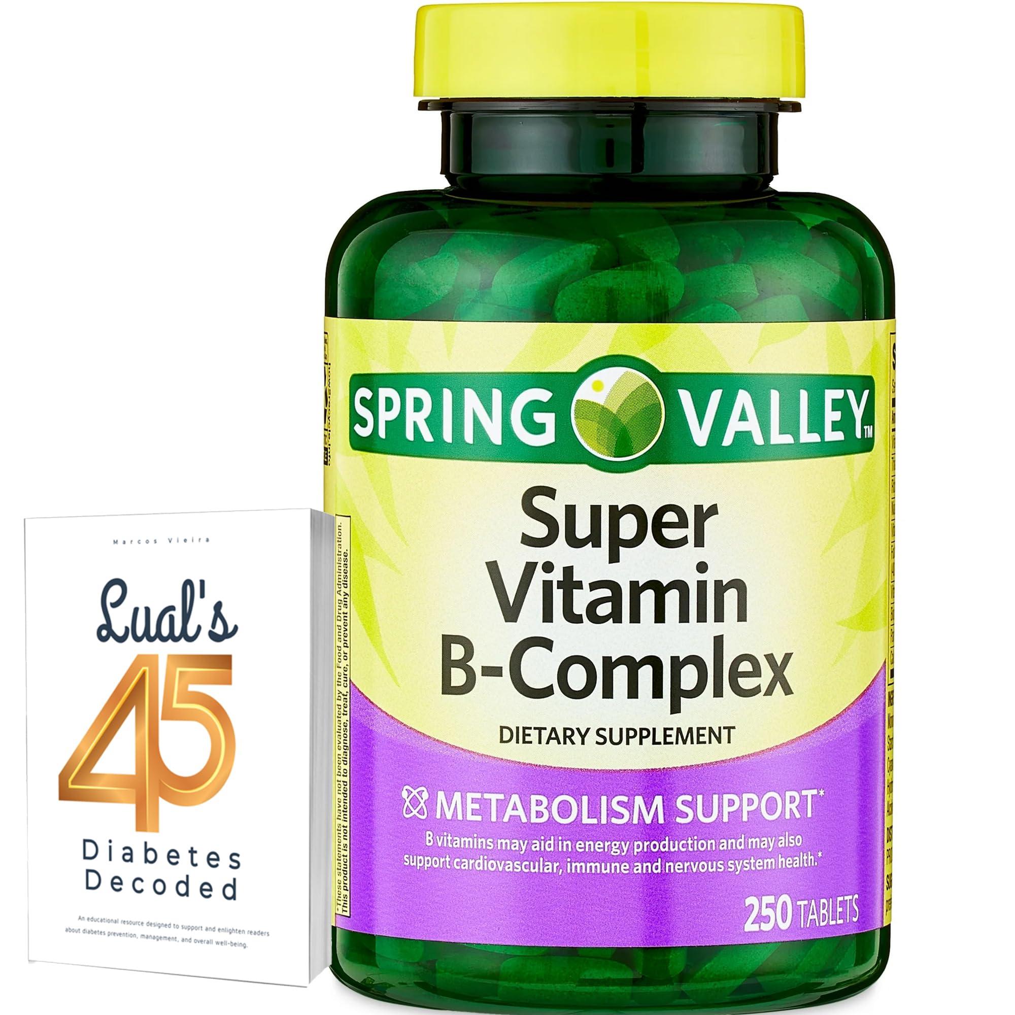 Super Vitamin B-Complex Tablets. Includes Luall Sticker + Spring Valley Super Vitamin B-Complex Tablets Dietary Supplement (250 Tablets)
